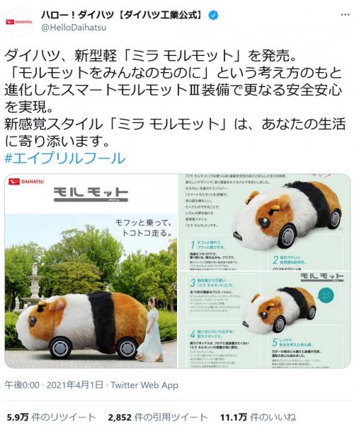 ダイハツ 新型軽 ミラ モルモット を発売 ダイハツのエイプリルフールネタが大反響 ニコニコニュース